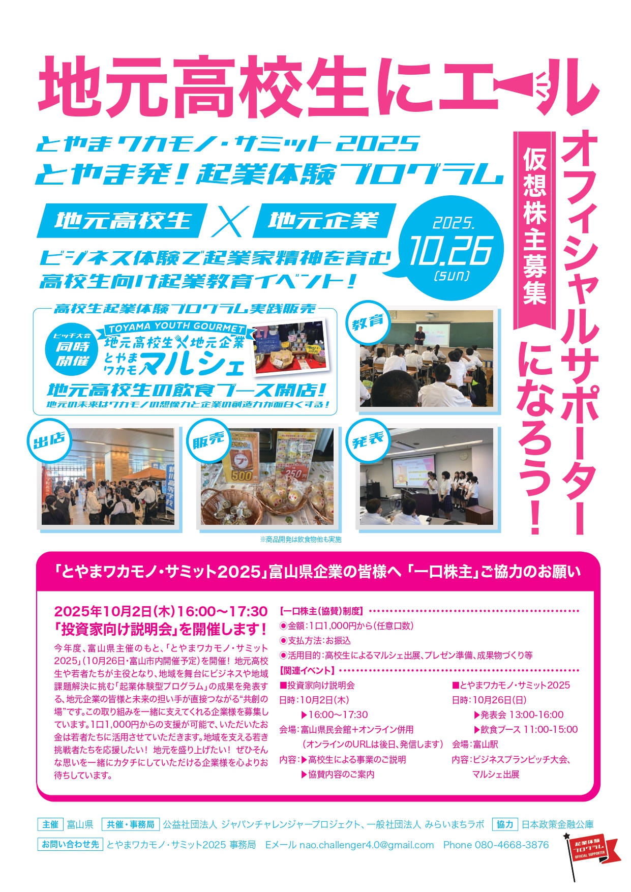 プロジェクト名:とやまワカモノ・サミット2025 投資家向け説明会
